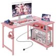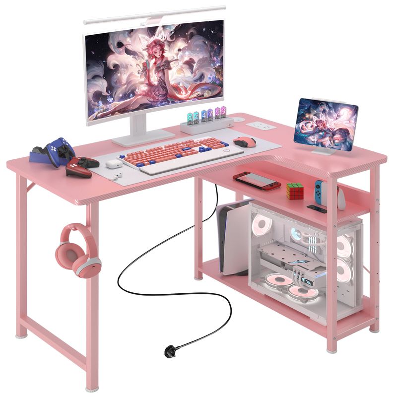 COMHOMA L Shaped Gaming Desk with Power Outlets Corner Computer Desk with Shelves Headphone Hook PC Table Workstation
