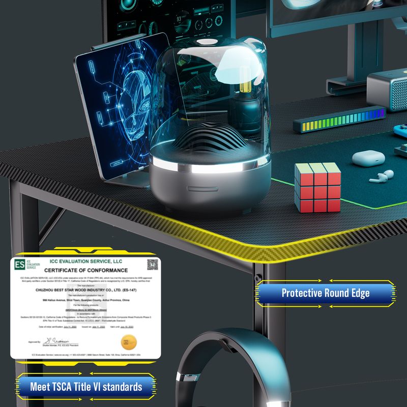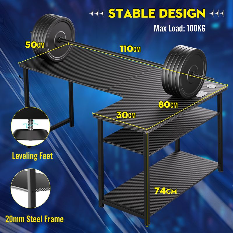 • 【Large Size and Plenty of Space】 110CMx 80CMx 75CM, the gaming desk provides you with a wider desktop space to accommodate monitors, laptops, keyboards, books, office supplies, etc. Not only is it suitable for office work, but it's also a great place for children to do their homework and study. The 74cm desktop height provides you with comfortable legroom and storage space.