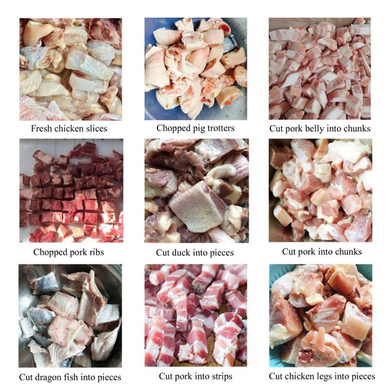 The machine is suitable for chickens, ducks, medium and small animal bones, ribs, frozen meat, fresh meat, frozen chicken, chicken legs and other processing equipment, can according to need to chop block , size is adjustable.