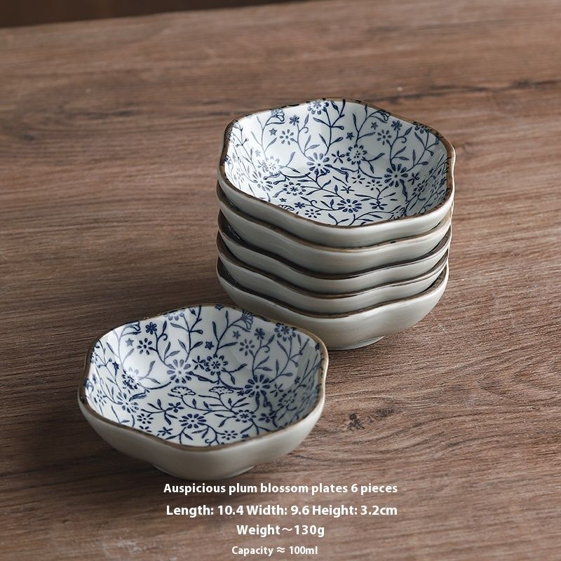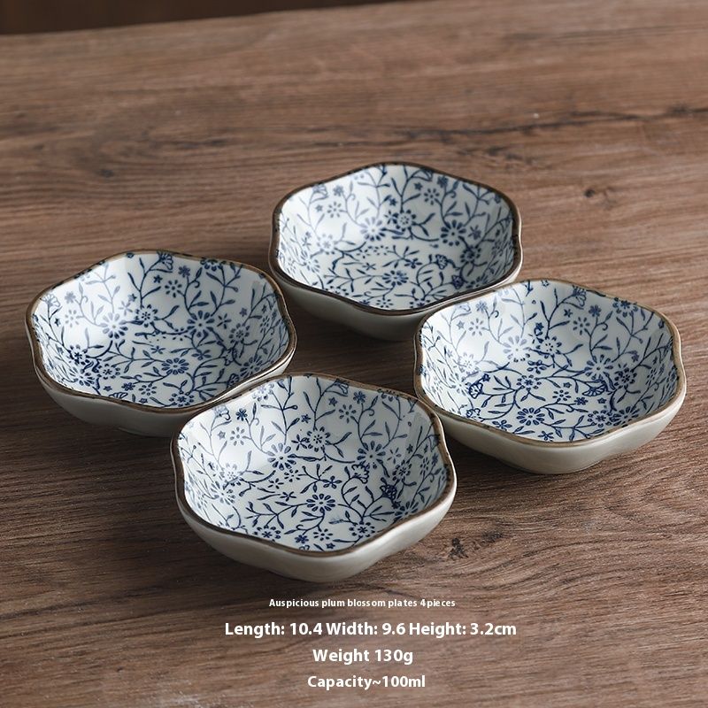 Commercial Restaurant 4-inch Plum-shaped Dish Ceramic Dish Lucky Flower Saucer 1 Piece