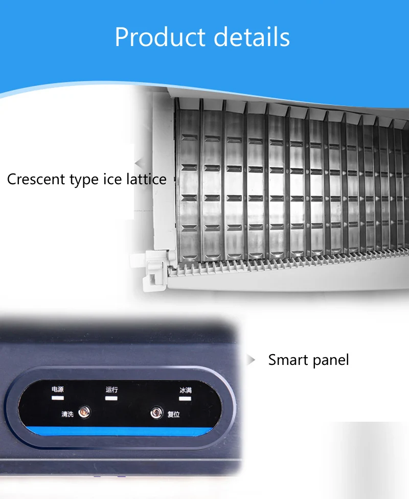 Our stainless steel industrial ice machine's easy-to-use control panel offers a range of functions, including convenient features like reservation, full ice reminder, water shortage reminder, de-icing, and self-cleaning mode. Plus,