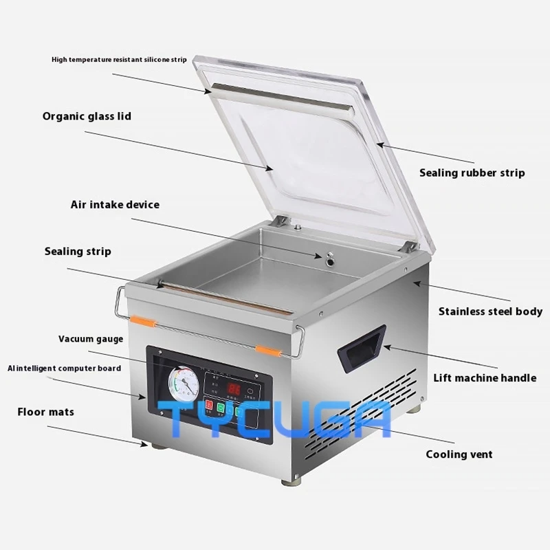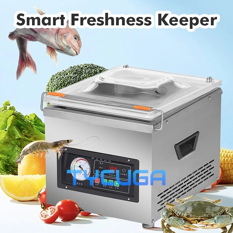 Commercial Vacuum Packaging Machine Plastic Bags Vacuum Sealer Dry Wet Oil Powder Universal 260mm Seal Length Date Printing