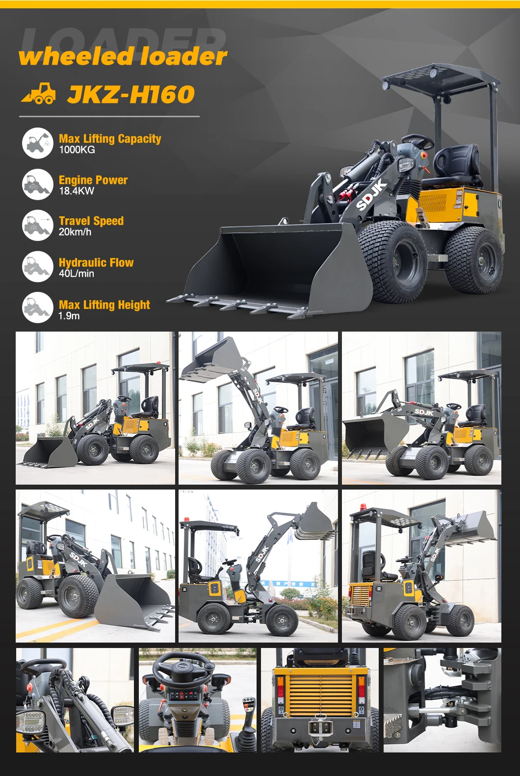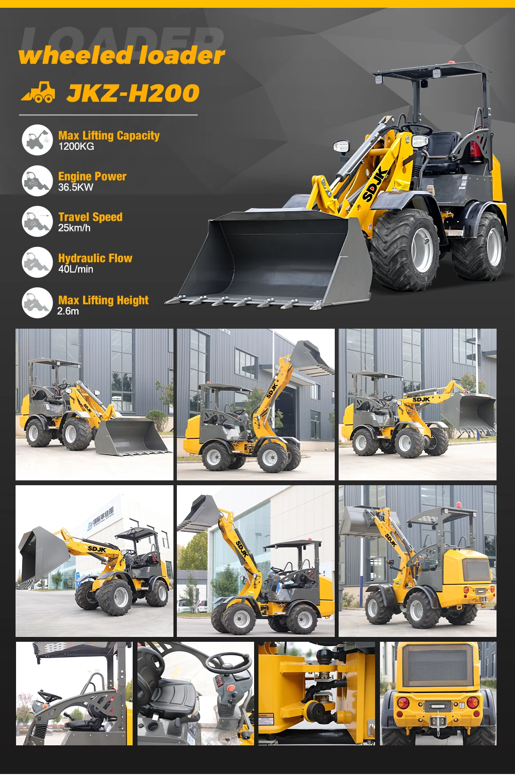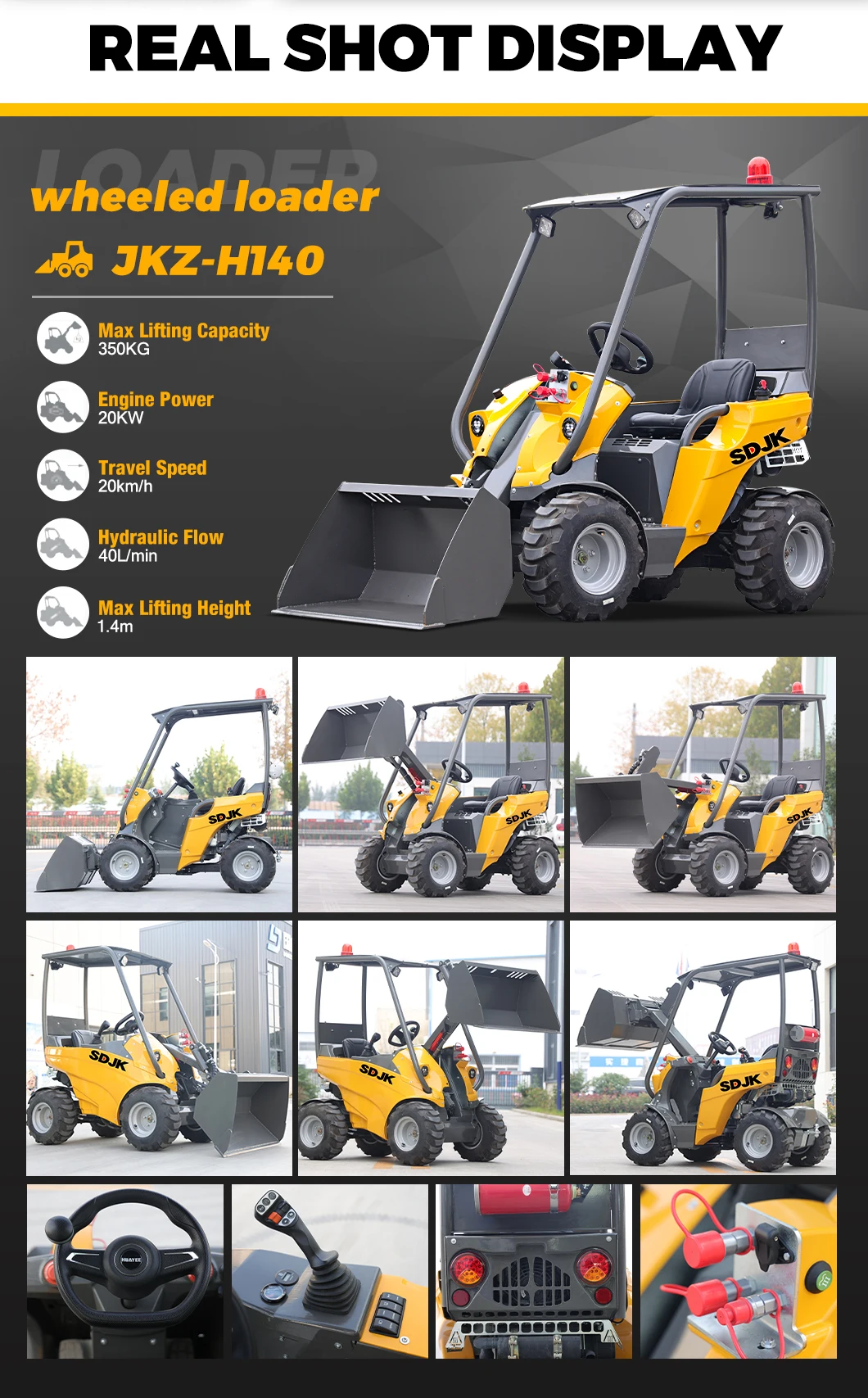 bucket can be level automatic, back sound, radio, fan, hand brake, extinguisher, window hammer, Free parts, tool box.Standard with 3 hydraulic lines.