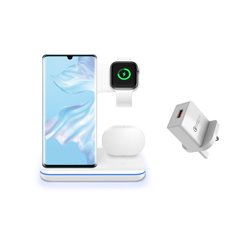 Compatible Mobile Phone Watch Earphone Wireless Charger 3 In 1 Wireless Charger Stand White UK plug Set