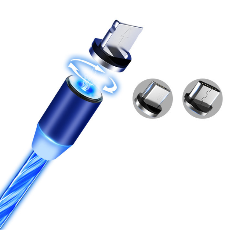 Compatible with Apple, Flowing Ligh Magnetic Streamer Data Line Cable for Iphone Android Typec Android Blue 2pcs