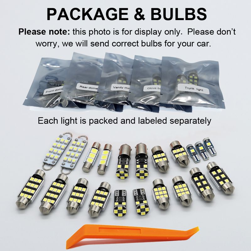 ▶ Product pictures are for LED bulb type reference only, we will provide compatible LED interior light kits according to the your car.