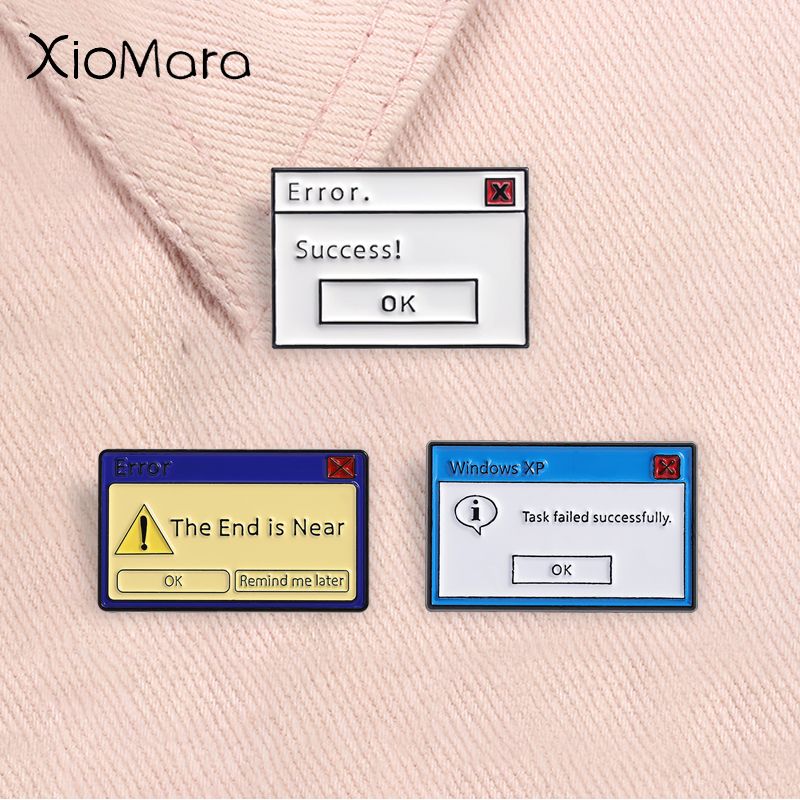 Computer Erro Message Enamel Pins Windows Xp Task Failed Successfully Page Jump Box Brooches Lapel Backpack Badge Jewelry Gifts