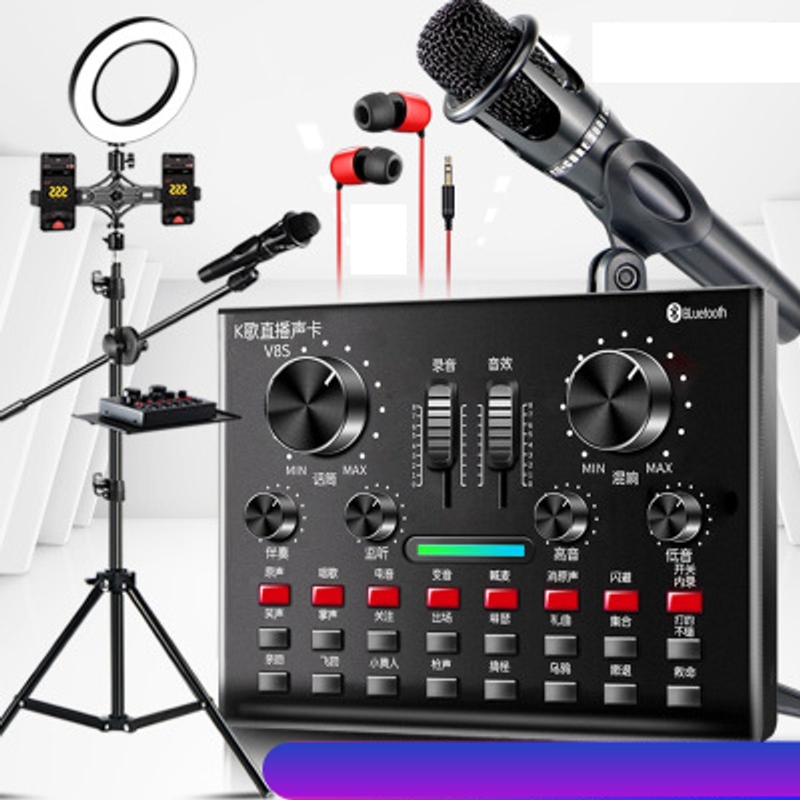 A section: V8S sound card + handheld wheat + earphone