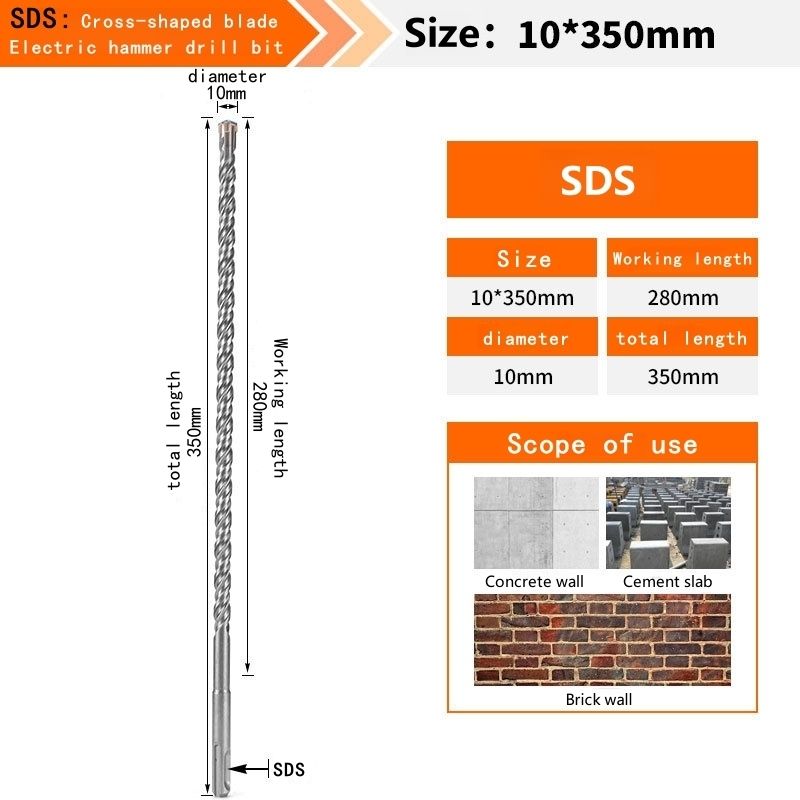 Concrete SDS Plus bit Cross Cutter head double auger Hammer 110 160 210 350 500mm Wall Brick Block Electric Hammer Masonry Bit