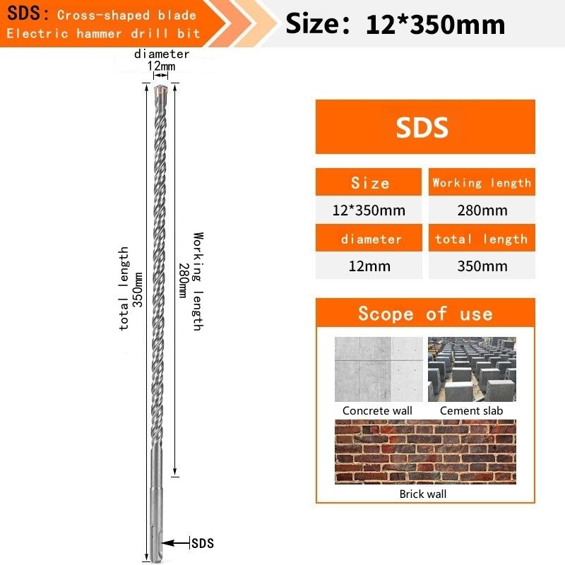 Concrete SDS Plus bit Cross Cutter head double auger Hammer 110 160 210 350 500mm Wall Brick Block Electric Hammer Masonry Bit