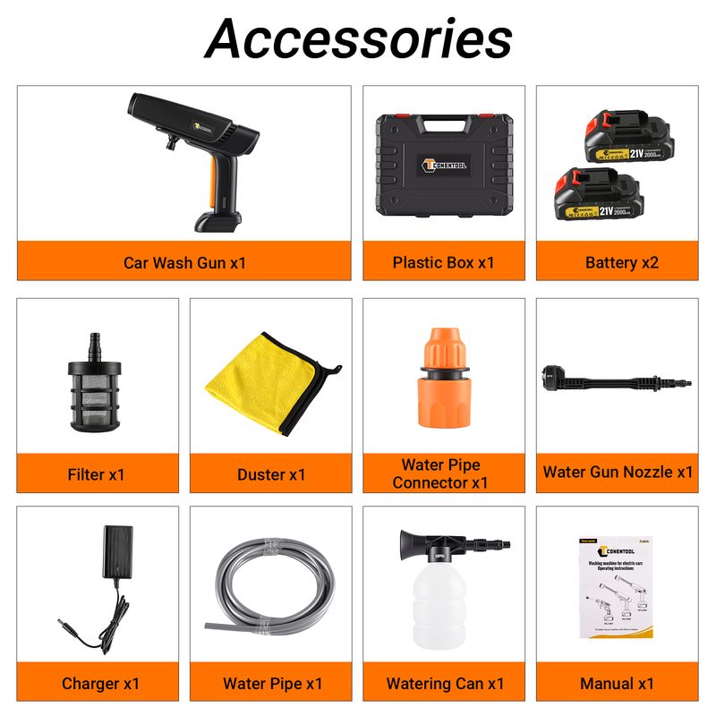 CONENTOOL 21V Electric Water Gun 6-in-1 Nozzle High Pressure Car Washer Gun 2 Batteries Garden Tools for Makita 18V Battery Pin