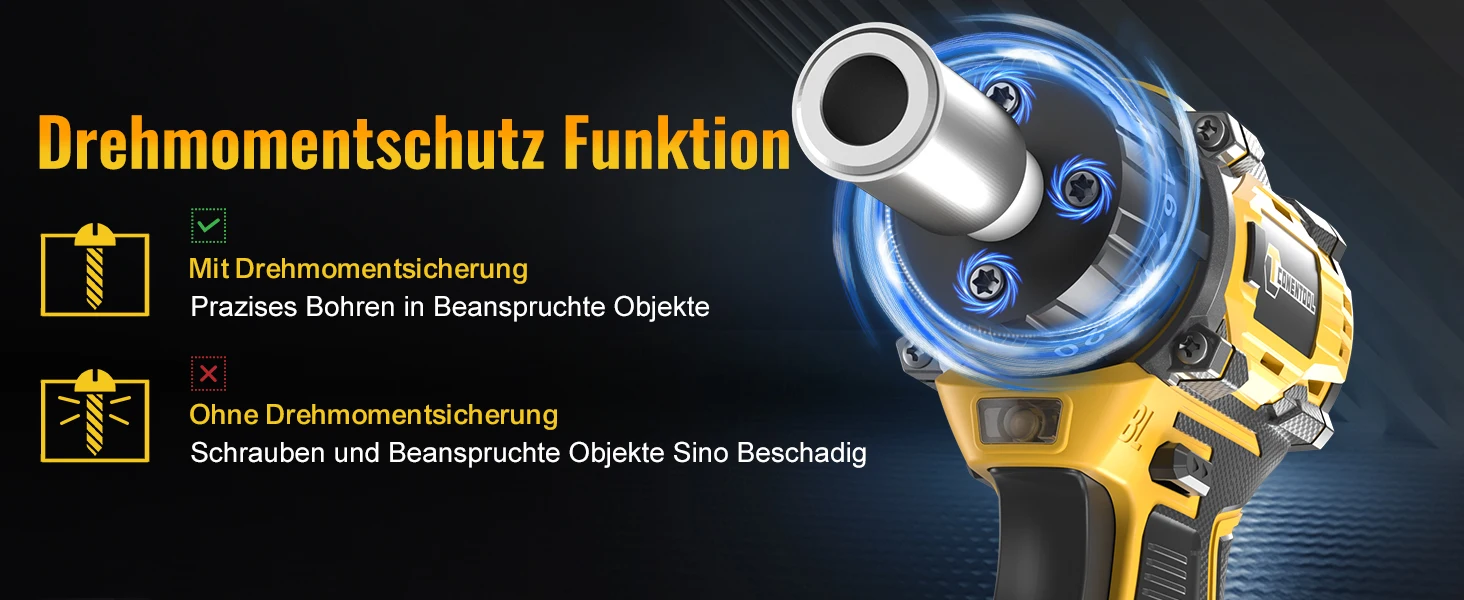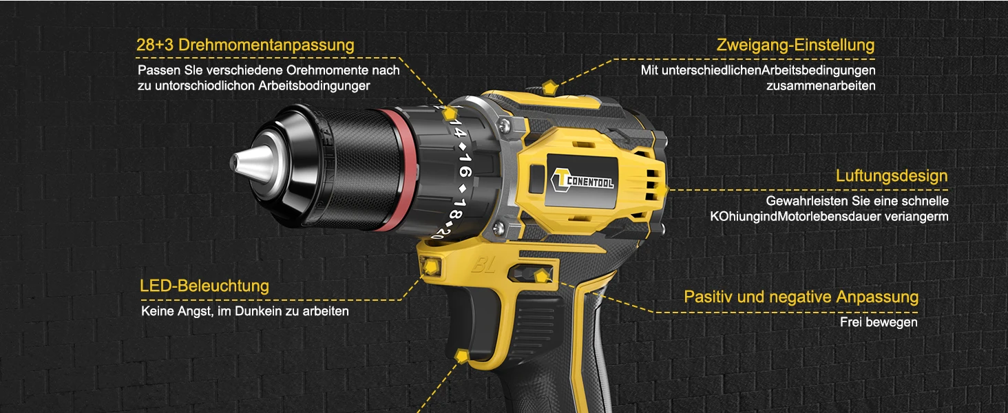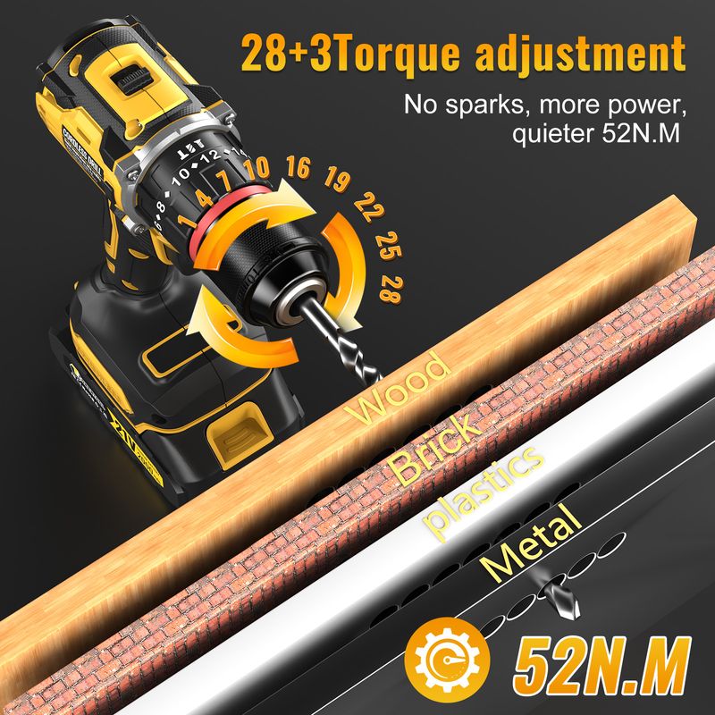 1. 52N.m super torque: easily drill through 10mm steel plate/concrete wall (2 times the power of ordinary electric drill)