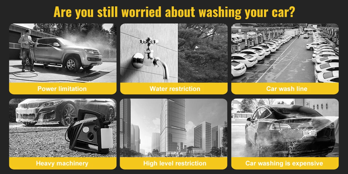 3. high pressure + 4L/min large flow, powerful decontamination: 100Bar high pressure combined with 4L/min large flow, 19000r/min brush motor provides strong power to quickly wash away stubborn stains such as car body sludge and wheel hub scaling.