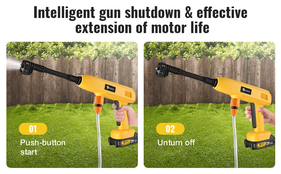 4. Wireless and lightweight + ergonomic design, zero burden on operation: 21V wireless design gets rid of cable constraints, lightweight body with ergonomic handle, long-term operation is not easy to fatigue, and car washing, gardening, and cleaning are easier.