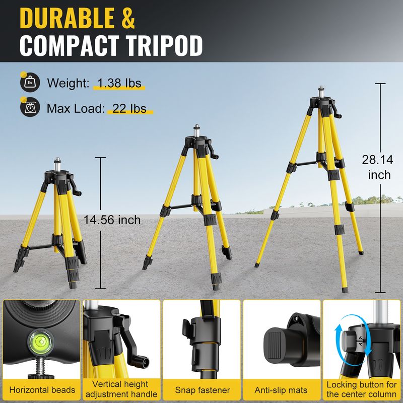 ✔Self-Leveling with Over-Tilt Protection:The tool automatically levels itself within 3° and alerts with an alarm if knocked beyond this range, ensuring accurate measurements every time. The compact design makes it easy to transport and use anywhere.