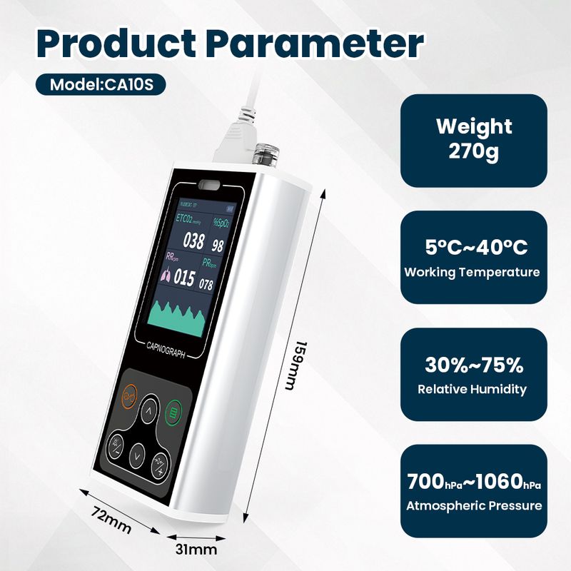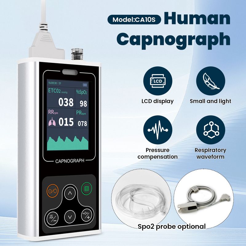 CONTEC CA10S Portable Capnograph Adopts Sidestream ETCO2 SPO2 PR Vital Sign Monitor ETCO2 SPO2 Sensor Handheld Patient Monitor