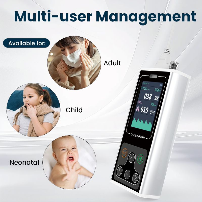 The Capnograph is applicable for use in pre-hospital emergency transfer, emergency department, ICU, operating room, neonatology, respiratory department and other occasions. The application population is adult, pediatric and neonate patients.