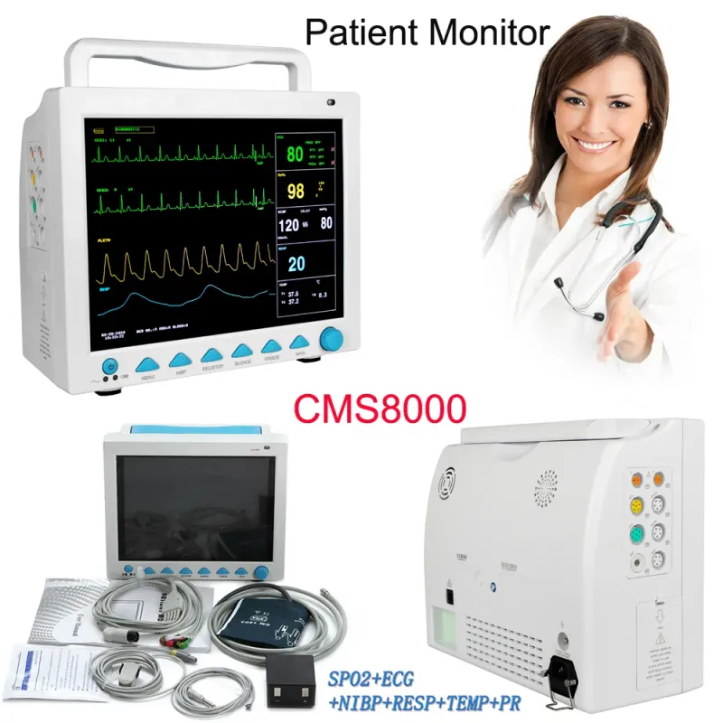 CMS8000 12.1'' Multi-Parameter Patient Monitor,The monitor has abundant functions that can be used for clinical monitoring with adult, pediatric and neonate. Users may select different parameter configuration according to different requirements. The monitor, power supplied by 100-240V~,50/60Hz,  adopts 12.1'' color TFT LCD displaying real-time date and waveform. It can synchronously display eight-channel waveform and full monitoring parameters equipped with an optional 48mm thermal recorder. The monitor can be connected to the central monitoring system via wire or wireless network to form a network monitoring system.