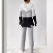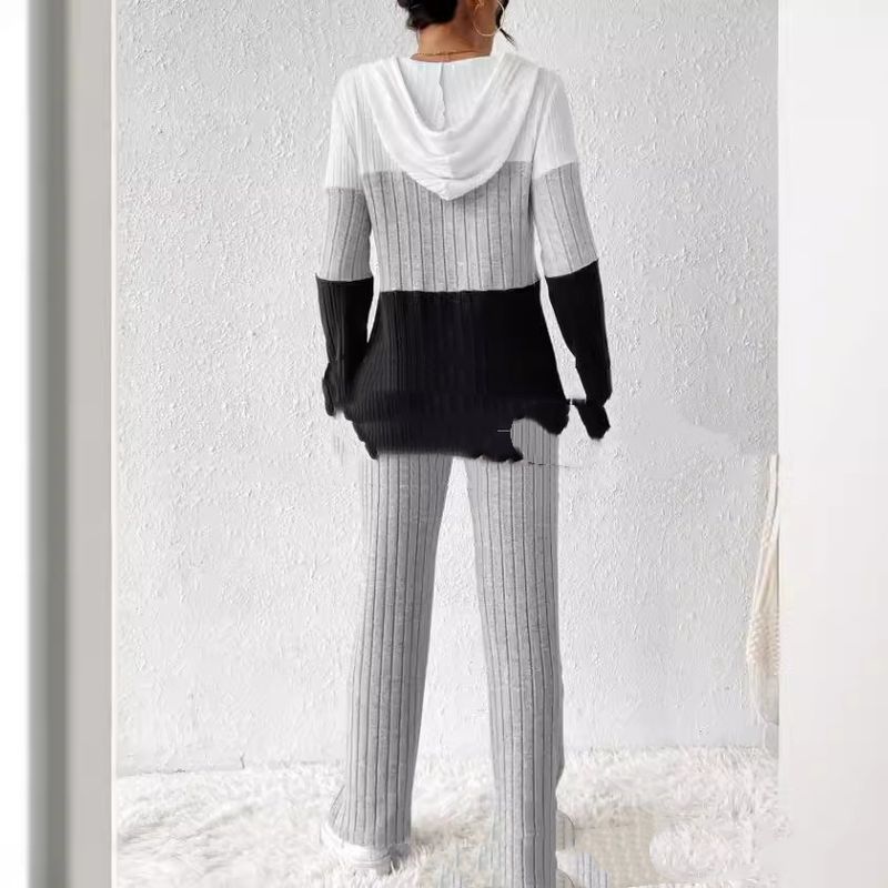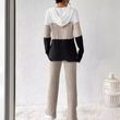 Contrast Color Hooded Zipper Long Sleeve Trousers Suit Knitted White And Blue S