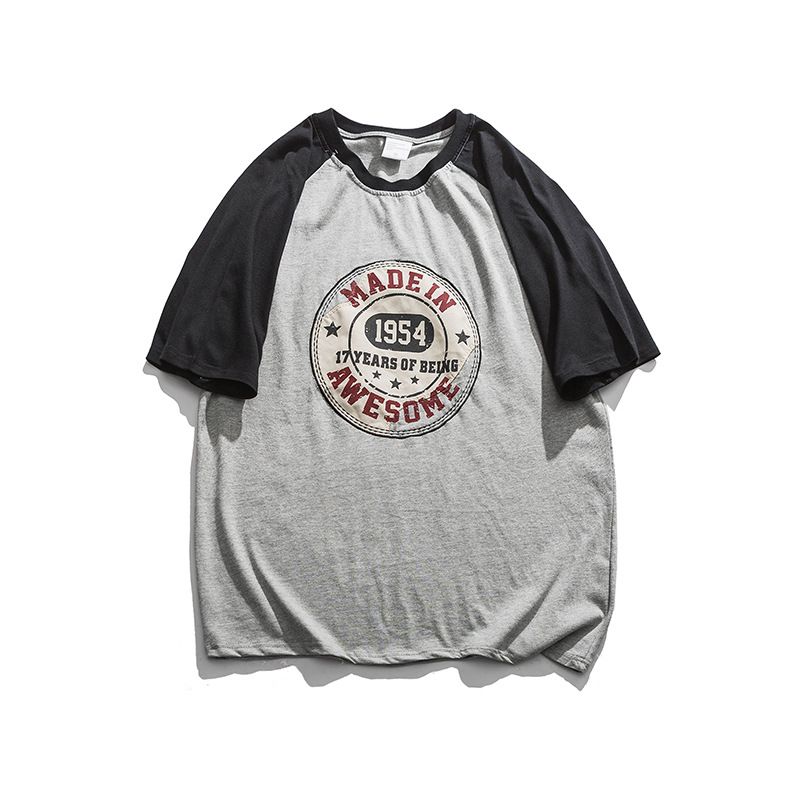 Contrast Color Raglan Couple Short-sleeved T-shirt Men Gray XL