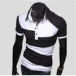 Contrasting Color Versatile Long-sleeved POLO Shirt Trendy Casual T-shirt Black M