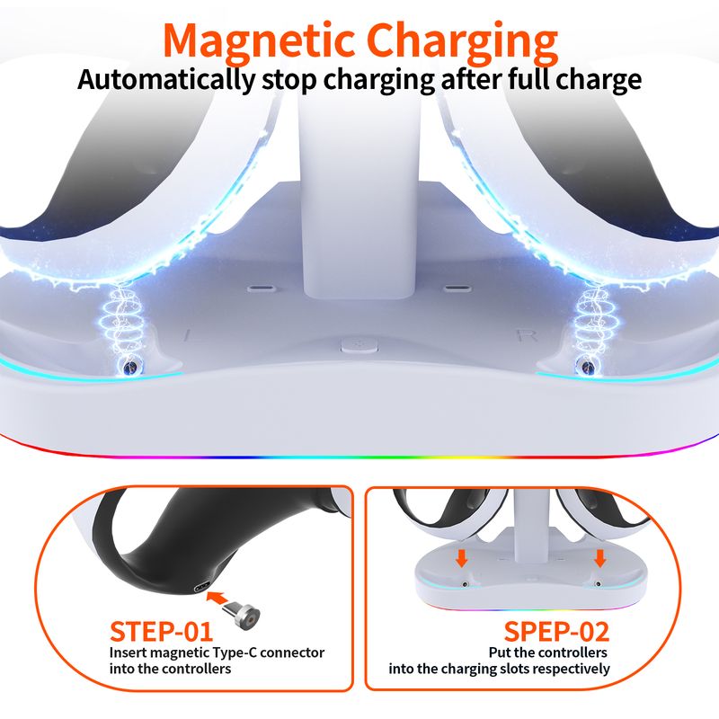 Controller Charging Dock for PS5 VR2, PSVR 2 Charging Station with VR Headset Holder Display Stand, PS VR2 Controller Charger for PSVR2 Accessories with Led Indicator, 2 Magnetic Clasp & Type-C Cable