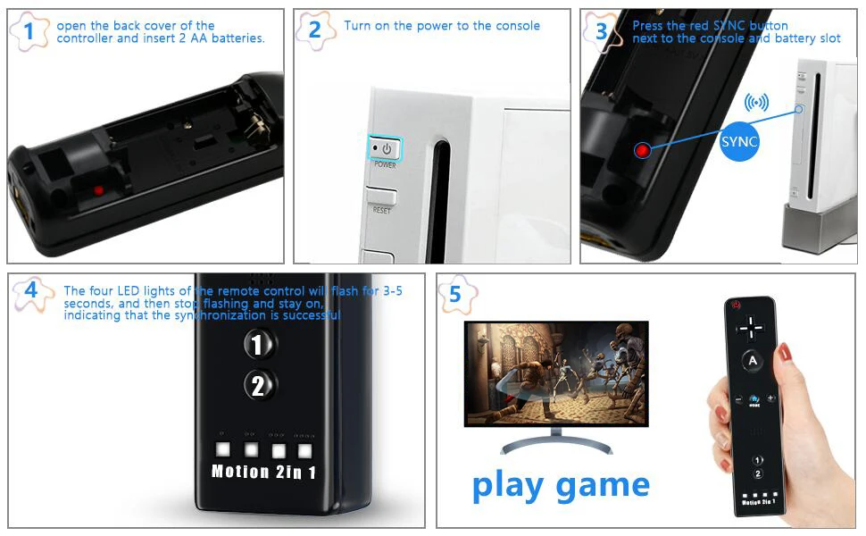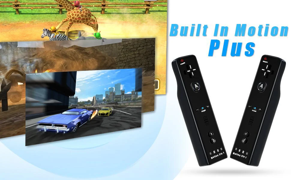 Motion Sensor: With kinetic energy sensing function, it can detect the change of the controller's stereo tilt. The G-Sensor accelerometer senses the movement of the handle to detect the swing force, direction and the tilt angle (linear gravity acceleration and center of gravity) of the W-iimote when the player controls the W-iimote. Built-in MotionPlus detects the real-time rotation direction and force (such as rotation vector and angular velocity) when the player controls the W-iimote.