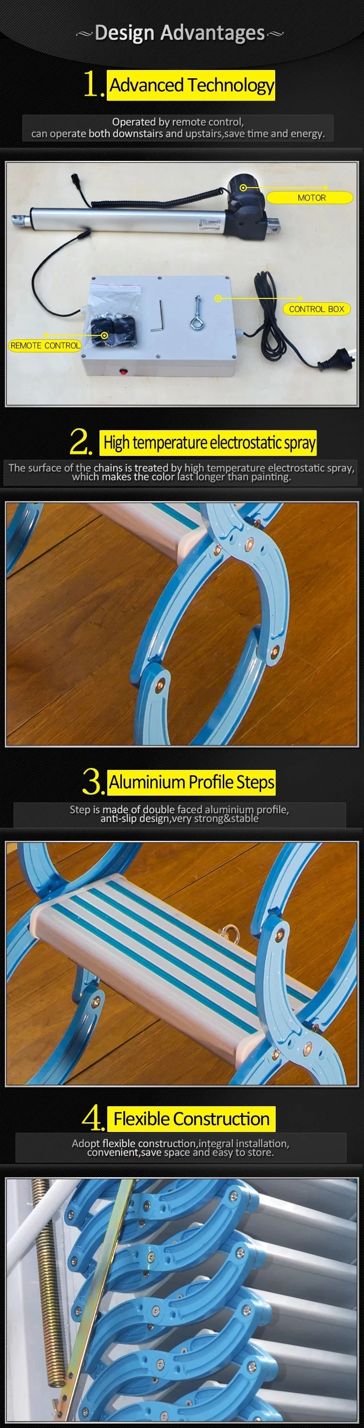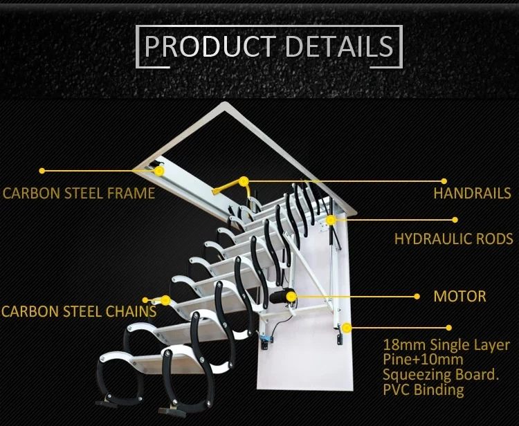 Convenient Access Indoor Electric Attic Telescopic Stairs Automatic Folding Loft Ladder Steel Collapsible Staircase Access