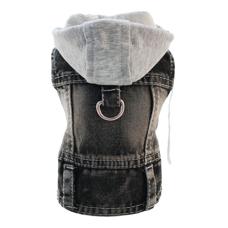 Cool Dog Jean Jacket Vest with D-Ring Hoodies for Small Medium Dogs, Spring Dog Clothes Puppy Denim Harness Coat for Walking