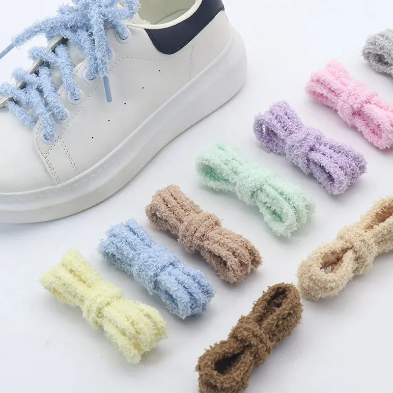 Weiou Laces 10 Bright Colors Flat Type Plush Laces 7mm Delicate Fluffy Towel Hoodie Drawstring Sneaker Women Shoelaces Clothing