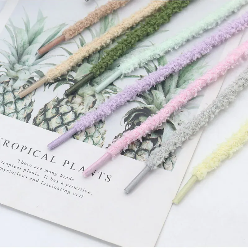Coolstring 10 Bright Solid Color Round Thick Plush Laces 7mm Fluffy Towel Hoodie Drawstring Sneaker Women Shoelaces Sweatshirt