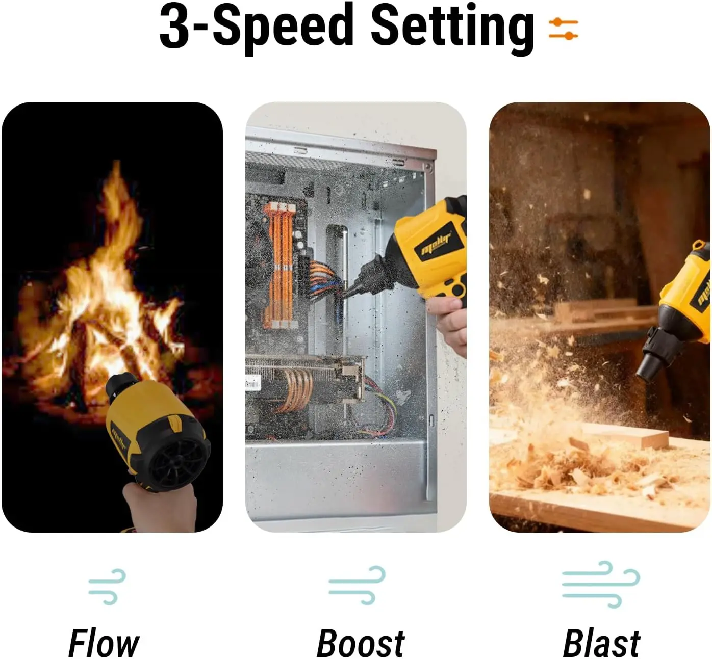 Adjustable Speeds: The dust cleaner offers 3 adjustable wind speeds, allowing you to choose the perfect speed for various tasks, like cleaning, inflating or deflating mattresses, swimming beds, and various other inflatable tools