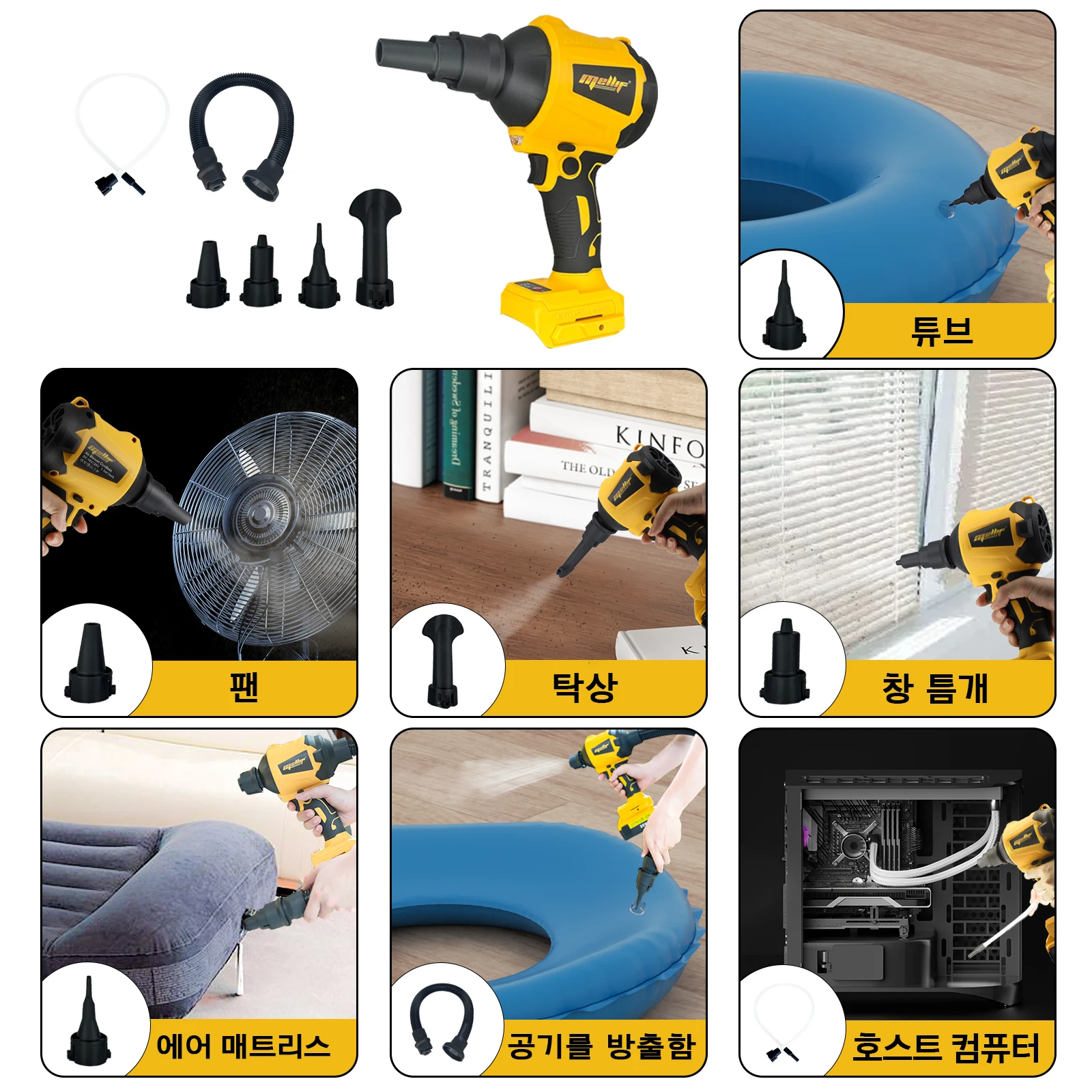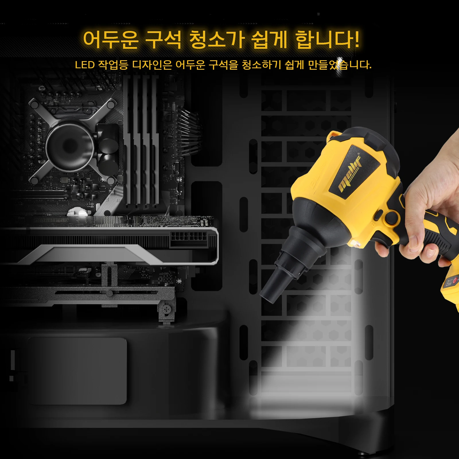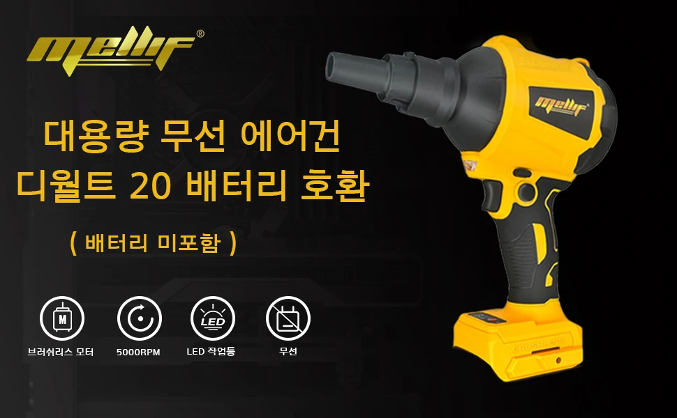 Mellif High Volume Compressed Air Duster Compatible with Dewalt 18V 20V Max Battery - 3 Speeds, 50000RPM Brushless Motor, LED Light, 7 Multi-Use Accessories - Ideal for PC Keyboard, Pool Toy (Battery Not Included)