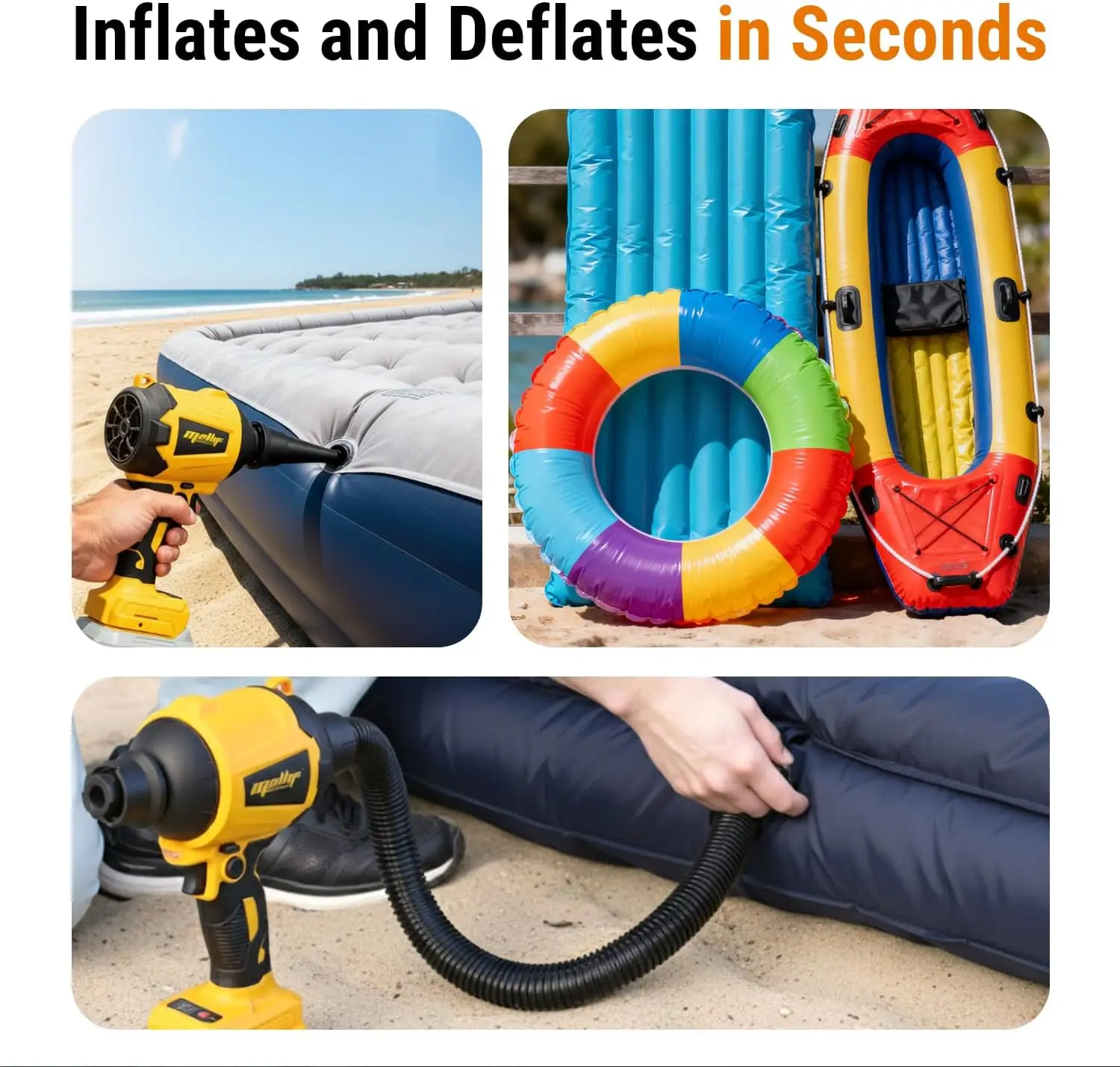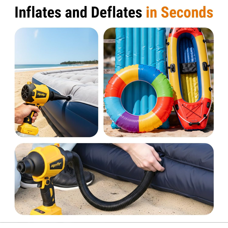 Lightweight & Compact: Weighs only 1.4 pounds (without battery) with compact design, the portable air pump is easy to carry and store. Take it out with you whenever you go swimming or camping