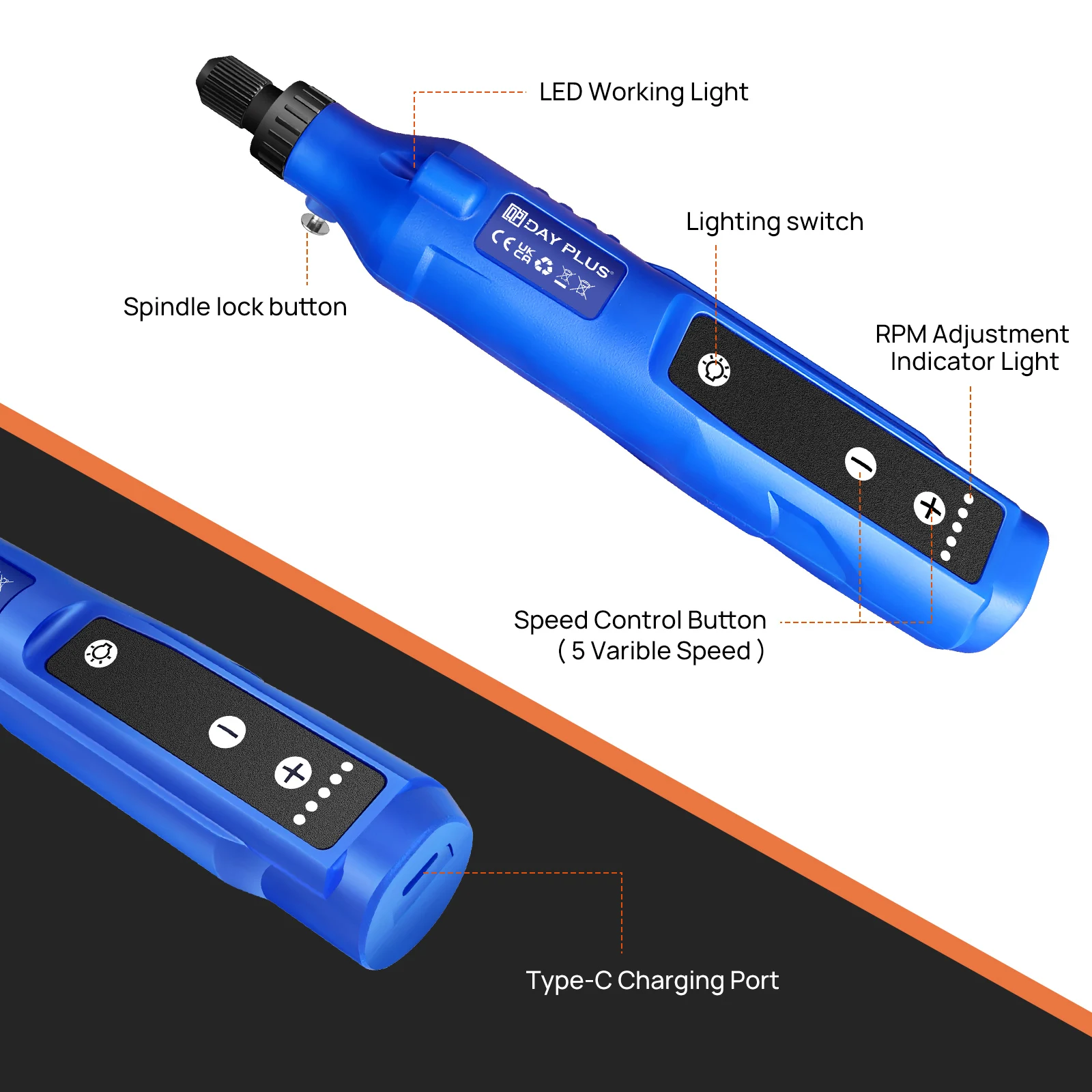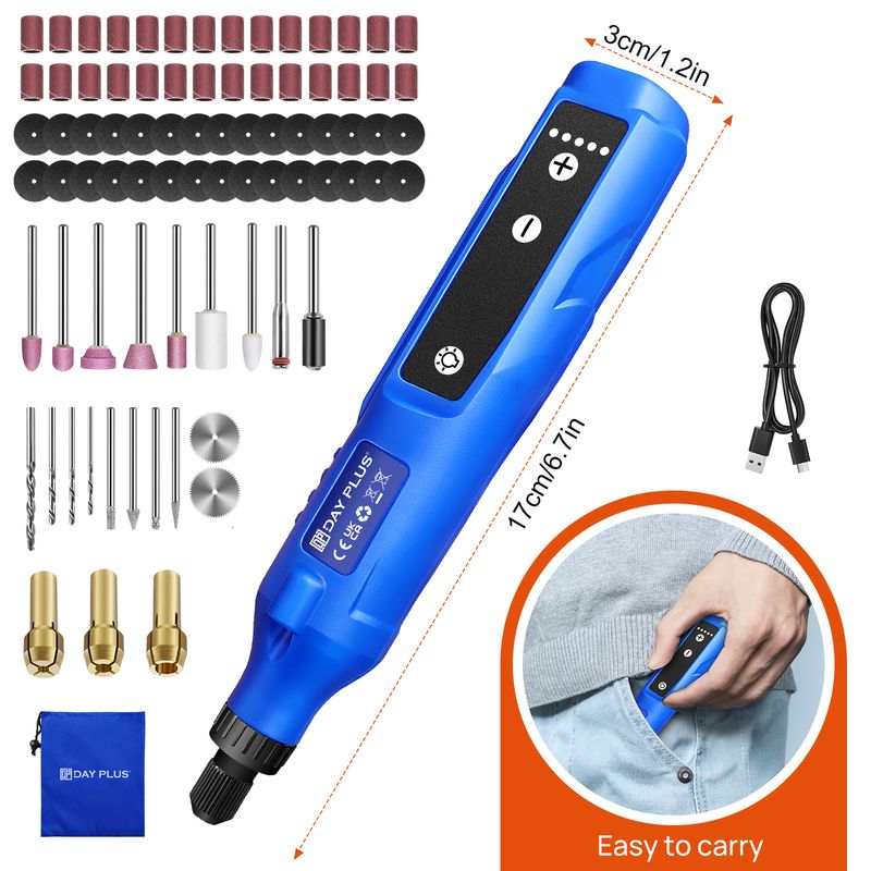 💫 5 different speeds: With 5 adjustable speeds (3000/6000/9000/12000/18000 rpm ), you can effortlessly tackle any small DIY project with our mini rotary tool. Even if you're a beginner, you can still experience effortless joy at the controls. The cloud-light feel reduces hand strain and allows you to work for hours without fatigue.