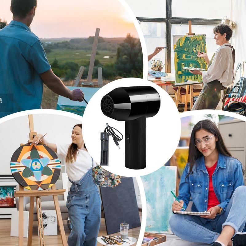 Create your art anywhere with this USB rechargeable cordless blow dryer. It's designed especially for art exams, painting creation, and other art activities. With low noise, it's perfect for business trips and travel. This is a good gift for any artist in your life.