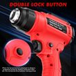 【Unique Locking Temperature & LED Light】——Designed with a lock-on button, after activated, press the button to keep the Heat gun running, truly free your hands. Internally contained LED lights are even designed to provide light for use in otherwise dark environments.