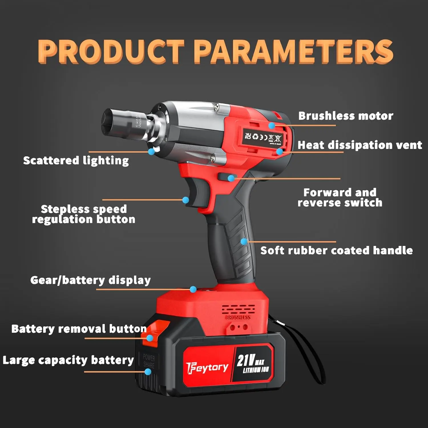 ใ๐๐๐ถ๐น๐-๐ถ๐ป ๐๐๐ -- ๐ก๐ผ ๐ก๐ฒ๐ฒ๐ฑ ๐๐ผ ๐ช๐ผ๐ฟ๐ฟ๐ ๐๐ฏ๐ผ๐๐ ๐ช๐ผ๐ฟ๐ธ๐ถ๐ป๐ด ๐ถ๐ป ๐๐ฎ๐ฟ๐ธ ๐๐ผ๐ฟ๐ป๐ฒ๐ฟใ-- electric impact wrench has a built-in bright LED, which improves visibility, making it a convenient tool for quickly and easily removing bolts and nuts in tight and dark spaces. not only illuminate dim work areas but also help professionals or non-professionals work accurately.