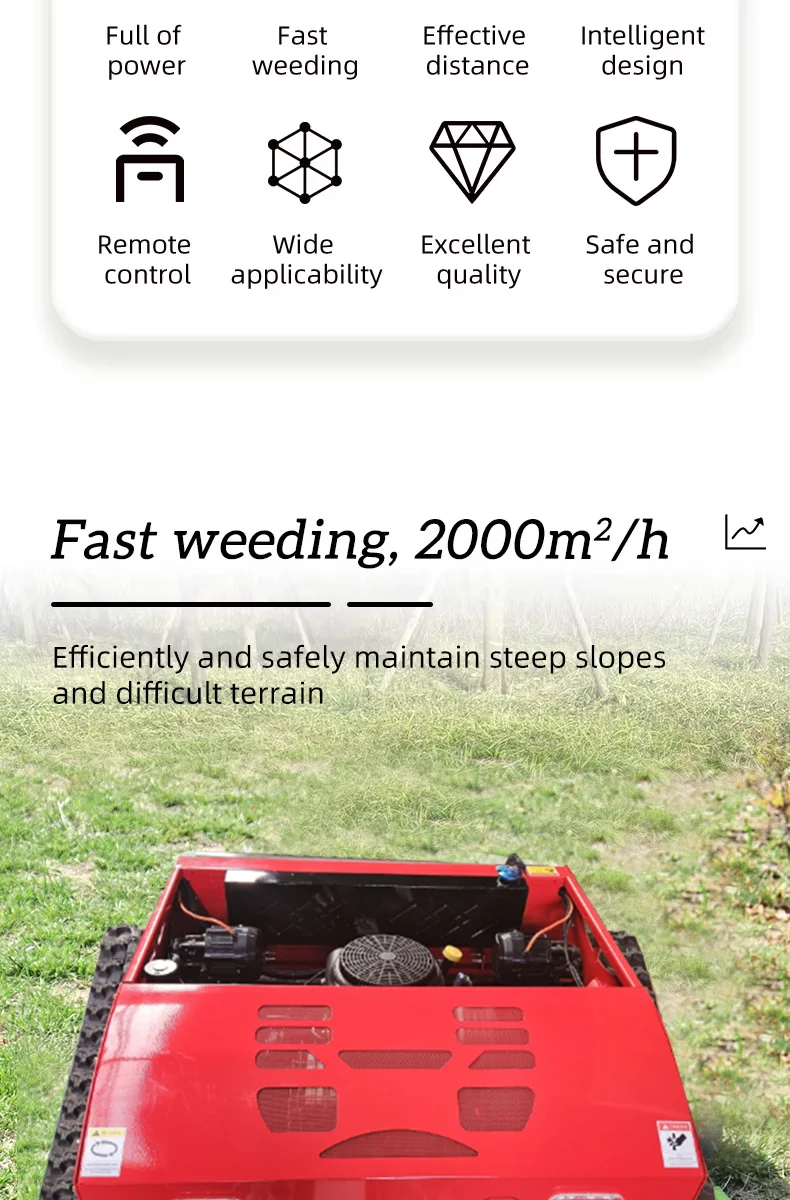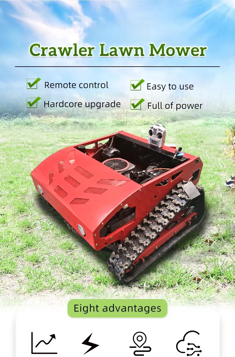 Cordless Industrial Grade Remote Control Wheeled Lawn Mower Smart Rotary Blade for Slope Garden