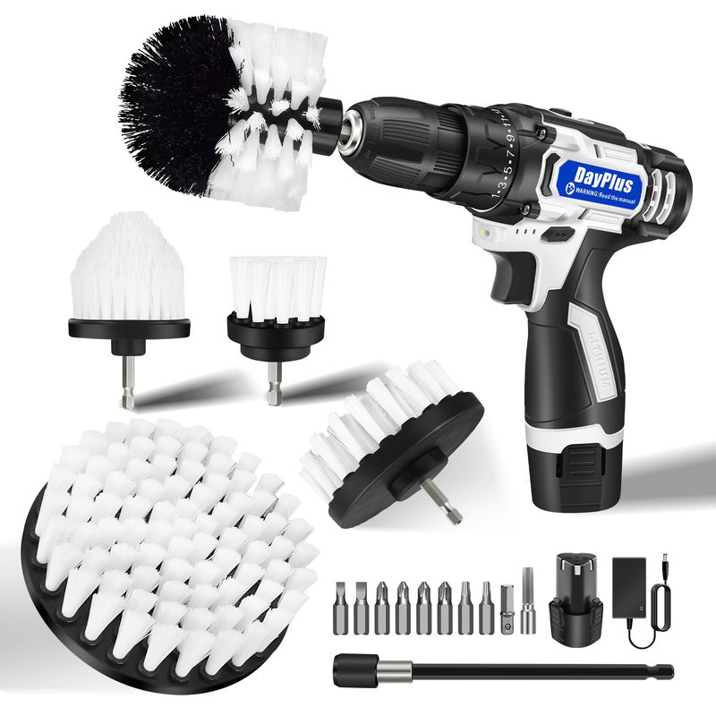 【Easy to install】this product includes a 16.8V cordless drill rig and extension rod, the drill brush attachment is fixed with hexagonal screws, just insert the brush attachment into the drill bit or extension rod and tighten it.