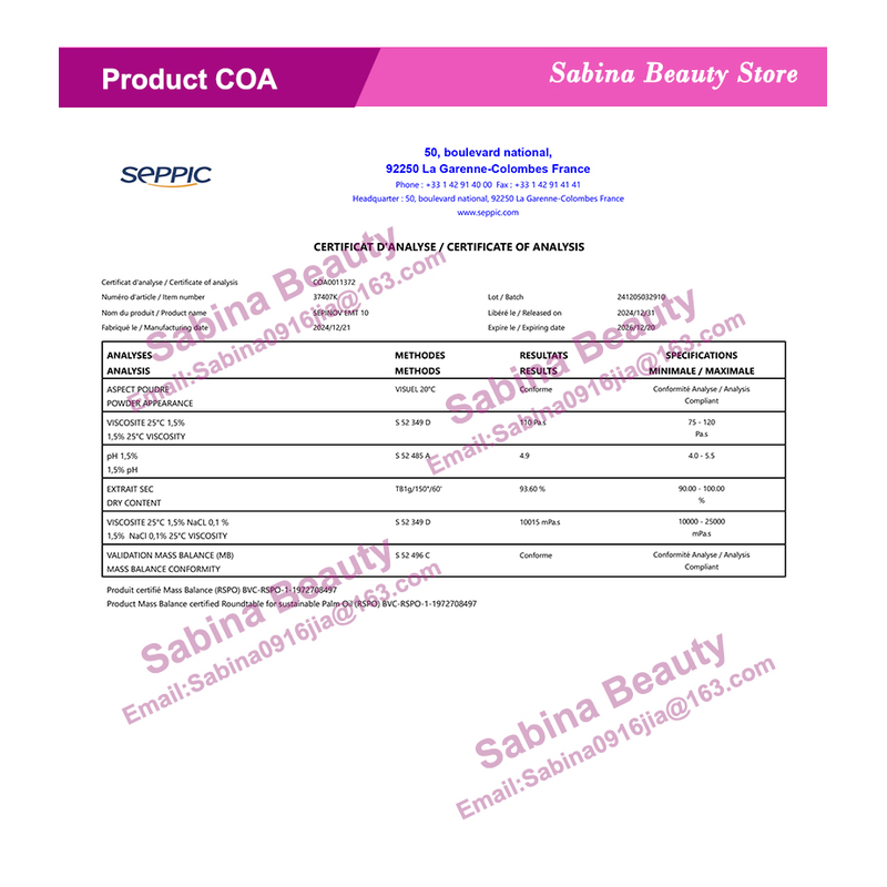 Sepinov EMT 10 Polymer is a "Hydro Swelling Droplet" (HSD) thickening emulsifier in powder form.