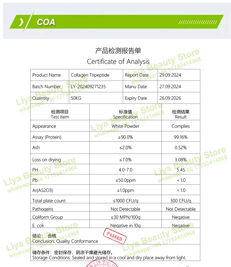 5. Repair: Collagen tripeptide can directly penetrate into the bottom layer of the skin, and has good affinity with surrounding tissues. It can assist cells to produce collagen and promote the normal growth of skin cells.