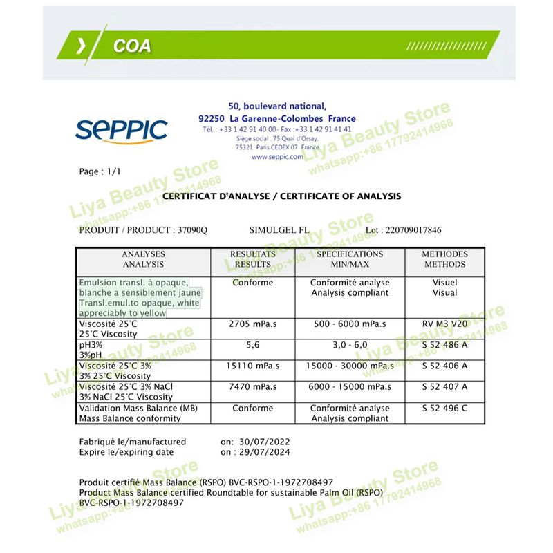 Cosmetic Raw Material SEPPIC SIMULGEL FL Emulsifier Thickener Suitable for Skincare and Hair Care Products
