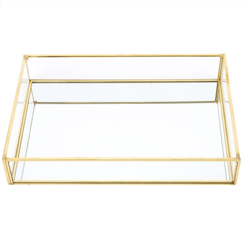 Cosmetics Storage Box Jewelry Organizer Makeup Cases Vintage Metal Glass Storage Box Gold Tray Jewelry Cosmetics Display Boxes