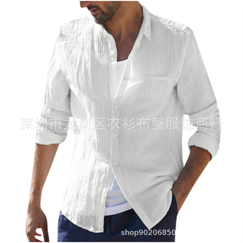 Cotton Cardigan Long Sleeve Shirt For Men White S