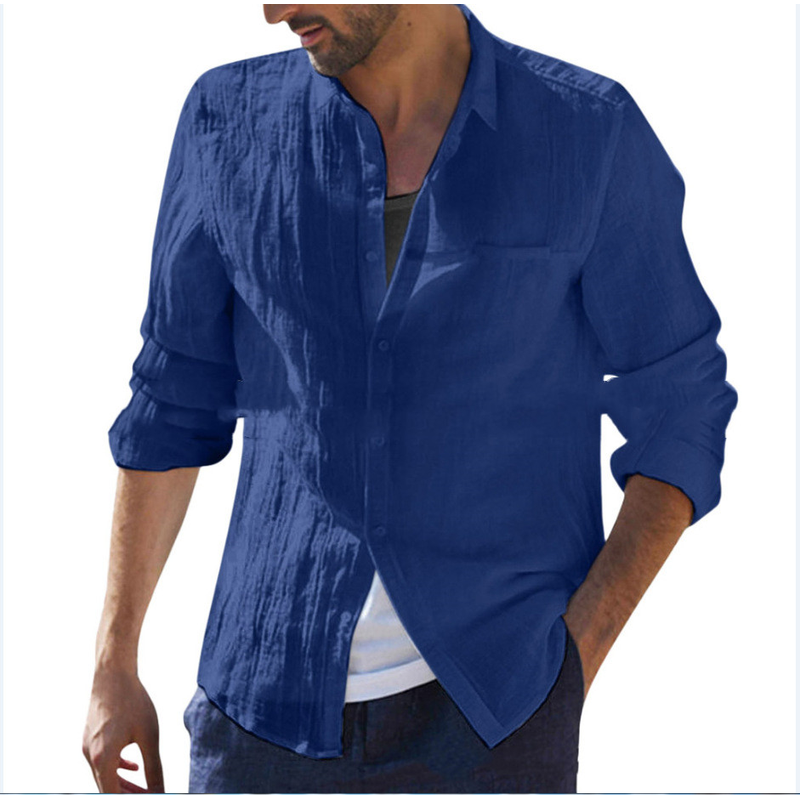 Cotton Cardigan Long Sleeve Shirt For Men White XXL