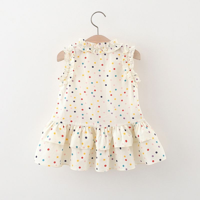 Cotton Dress for Baby Girl Heart Shaped Button Colorful Polka Dot Bow Dress Send Bag