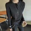 Cotton Henry Collar Embroidered Light Luxury Long-sleeved T-shirt Men And Women Same Style Top Black XL