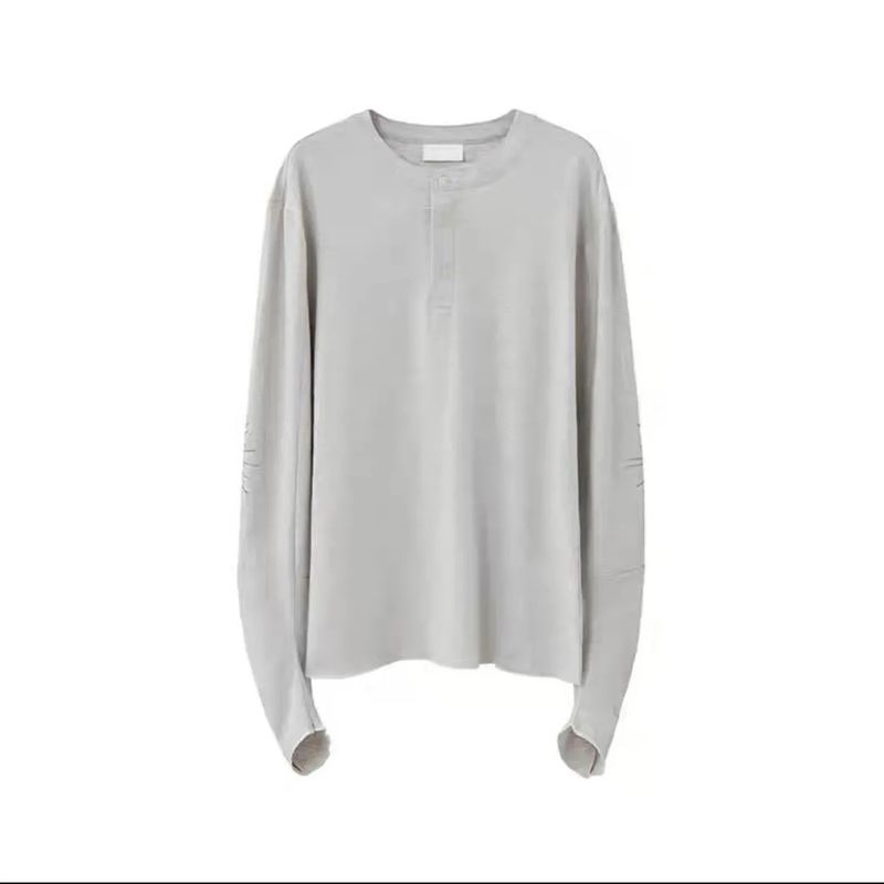 Cotton Henry Collar Embroidered Light Luxury Long-sleeved T-shirt Men And Women Same Style Top Gray M