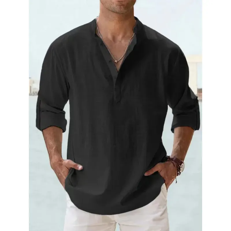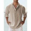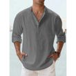 Cotton Linen Hot Sale Men's Short-Sleeved Shirts Summer Solid Color Henley Collar Casual Beach Style Hawaiian Vacation